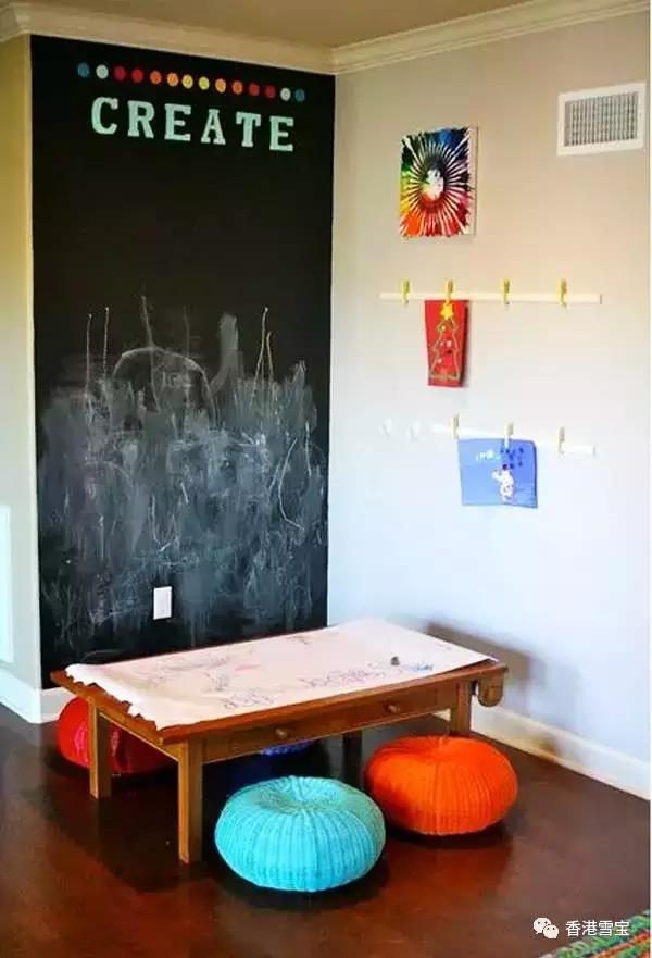 ▲孩童時(shí)期正是想象力最旺盛的時(shí)候,何不給孩子一個(gè)發(fā)揮的空間呢?一面黑板墻正好可以滿足孩子的需求和想象。