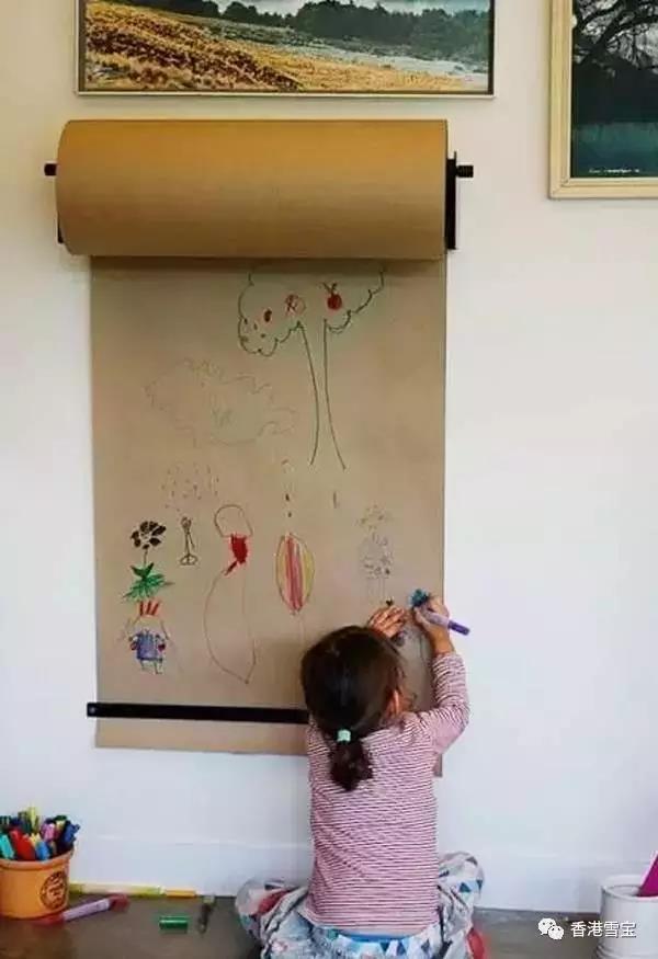▲如果擔(dān)心黑板灰會(huì)造成粉塵過敏,那么在墻上裝訂一卷畫紙吧,讓孩子時(shí)時(shí)刻刻都可以來一場(chǎng)頭腦風(fēng)暴!
