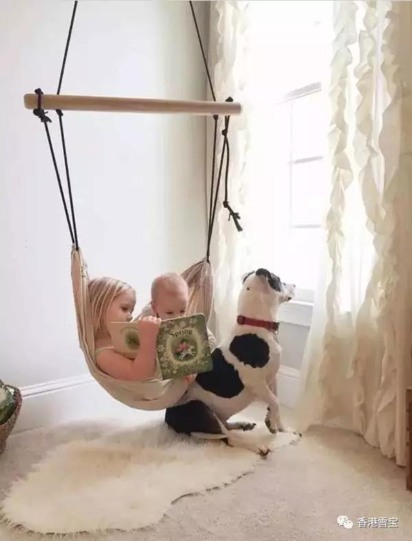 ▲在臥室里裝一個(gè)小吊椅看起來不錯(cuò)。在保證安全的情況下,家庭中適當(dāng)?shù)膴蕵泛拖灿兄谂囵B(yǎng)孩子活潑開朗的個(gè)性。