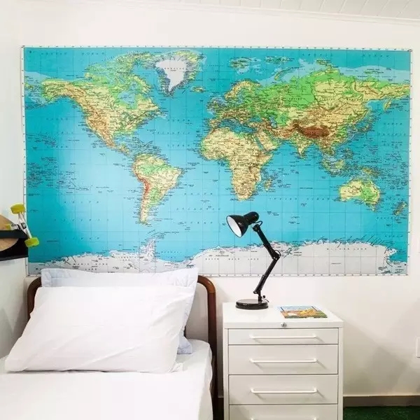 臺燈當(dāng)床頭燈使用,移動方便,靈活性強,加上其小巧可愛的造型又為這簡約的空間帶來靈動美。地圖裝飾墻壁,美觀的同時還可體現(xiàn)主人興趣愛好。