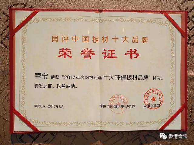捷報頻傳!香港雪寶榮膺“十大環(huán)保板材品牌”!