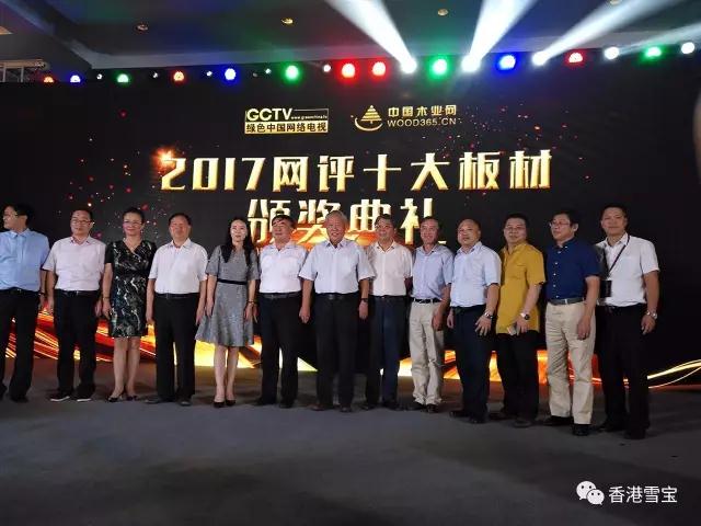 ▲“塑品牌,造未來”高峰論壇暨2017板材十大品牌頒獎典禮,香港雪寶國內(nèi)營銷中心熊總及來訪領導合影!