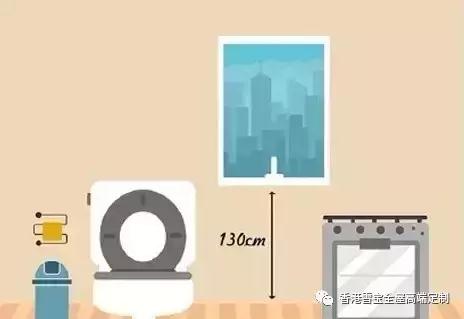 衛(wèi)生間是非常隱私并且需要采光較好的地方,所以衛(wèi)生間的窗臺高130厘米-150厘米左右,窗扇上懸,這樣窗戶不但可以長開通風(fēng),也可以保護私密性。