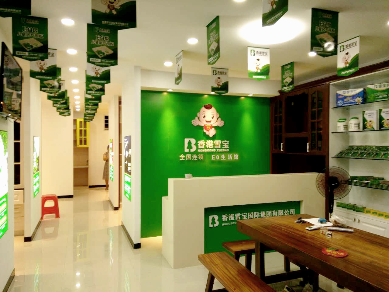 從進(jìn)店看到雪寶小天使的背景墻到一窺各個(gè)展區(qū)的長(zhǎng)走廊,明亮的燈光布置和隨處可見的品牌文化宣傳給人專業(yè)高效,品質(zhì)優(yōu)秀的視覺印象。