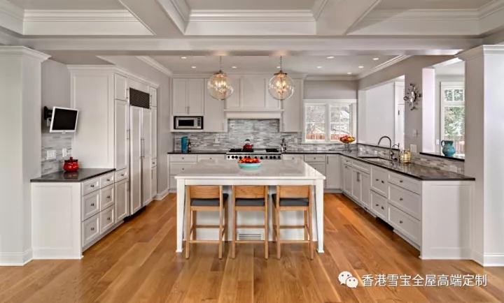 廚房的最佳布局是U字形櫥柜,這種布局既可以按照上面說的順序,同時可以利用的臺面寬度是最長,做菜的時候各個步驟施展起來就會很寬敞。