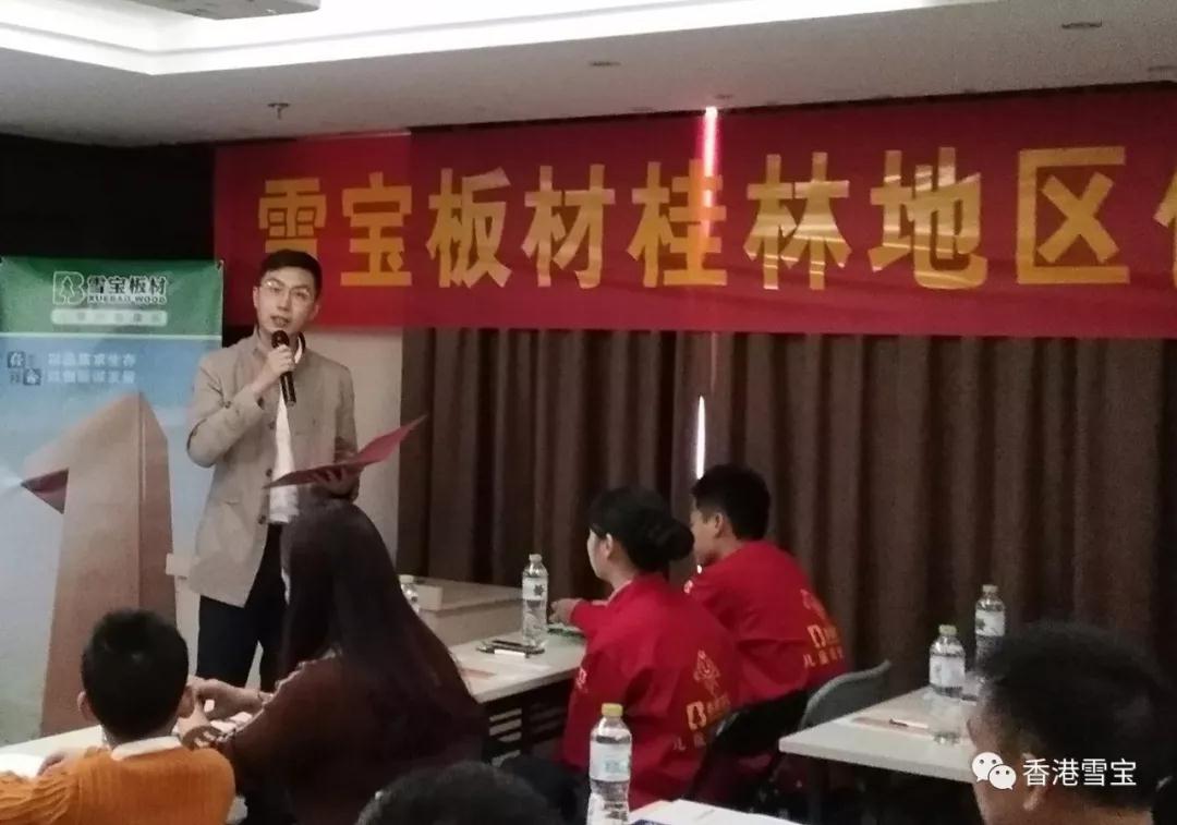 ▲雪寶品牌區(qū)域負(fù)責(zé)人侯經(jīng)理在雪寶板材桂林地區(qū)優(yōu)秀經(jīng)銷商培訓(xùn)會活動現(xiàn)場致開訓(xùn)詞。